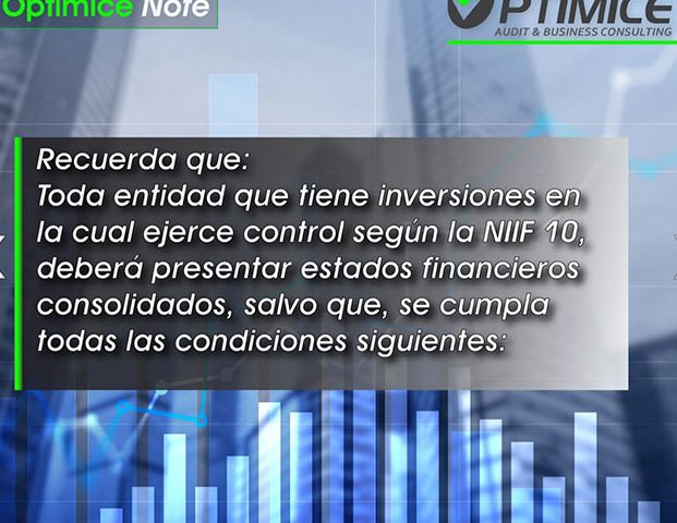 Toda entidad que tiene inversiones en la cual ejerce control según la NIIF 10, deberá presentar estados financieros consolidados, salvo que, se cumpla todas las condiciones siguientes: